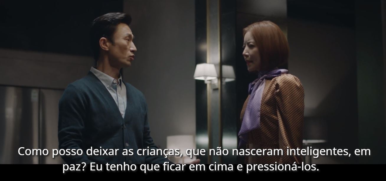 Por que esse drama de 20 episódios aparentemente simples ganhou uma cavalar popularidade? Vou tentar explicar e convencê-lo a assistir, começando pela premissa. SKY Castle é um condomínio exclusivo para doutores e professores VIP, construído pelo primeiro presidente da prestigiosa Universidade Joo Nam e seus residentes são ricaços completamente obcecados em dar sequência ao legado e colocar seus filhos na melhor faculdade, recorrendo a cursinhos e renomados caríssimos tutores particulares. Para tal, os pais fazem verdadeiras loucuras pensando em colocar seus filhos em primeiro lugar nos rankings, recorrendo a cursinhos após as aulas extensas, práticas de estudo com cronômetro, pressão psicológica e um vale tudo para ser o número um e exibir seus filhos para os outros pais.